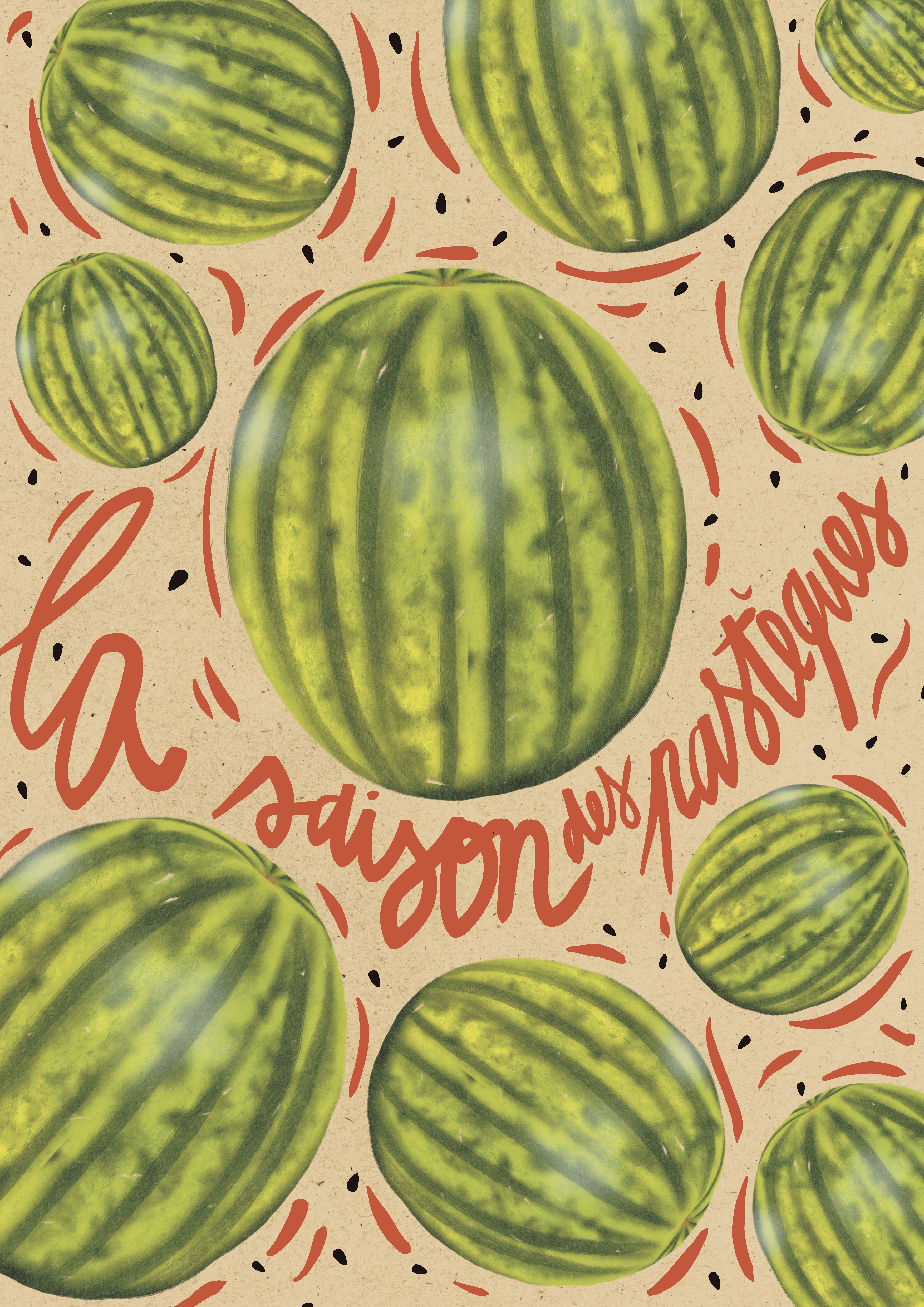La saison des fruits, celle qui dure toute l’année finalement. Affiches pleines de vitamines. Illustrations digitales faites à la main, Cafouillis studio ©